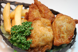 新鮮な鶏肉(むね肉)(骨なし)をミルクと卵に漬込んだ後、スパイシーなオリジナルのブレッターを付け、圧力フライヤーで揚げました。