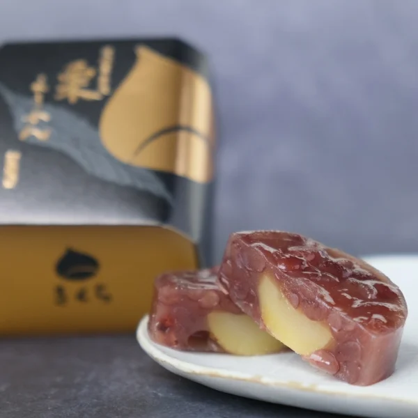シンプルだけに素材にこだわりました。北海道産厳選小豆を使用し、丁寧に練り上げておつくりした羊羹に、茨城県産の栗を贅沢に閉じ込めた店主自慢の一品です!