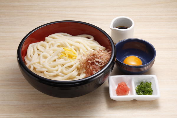 当店の名物!うどん2玉に茨城県土浦市の醤油(紫峰)を混ぜ合わせて食べる汁なしうどん。