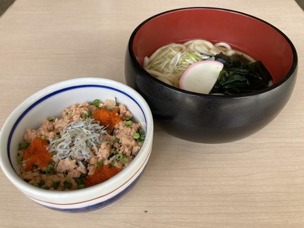 肉厚な鮭のほぐし身と磯の香りが漂う国産釜揚げしらすを乗せた