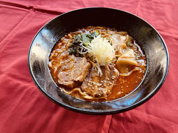 味に自信あり!柔らか角煮入りで創作ラー油が隠し味。辛党用にカウンターにも追いラー油を置いております。