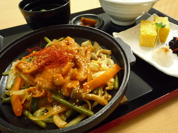 豚の白モツを野菜と一緒に特製味噌でアツアツ鉄板焼きにした定食です。