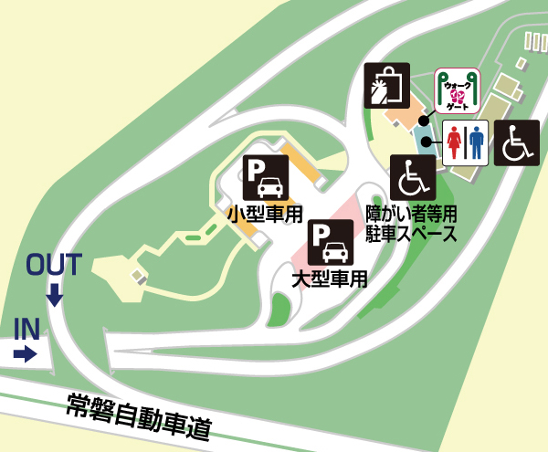 - 障がい者等用駐車場の設置、オストメイト対応トイレの整備等、バリアフリー化が行われているサービスエリアです。