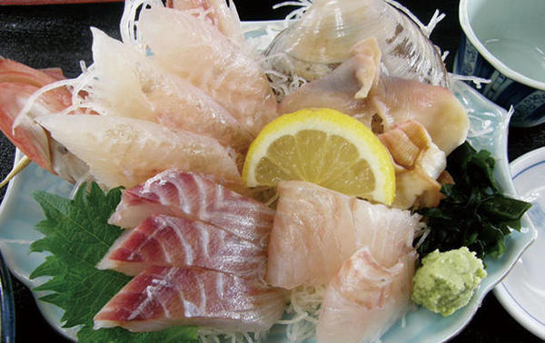 地元漁港より水揚げされた新鮮な魚介類の4点盛です。内容は水揚げ状況により日々変わります。
