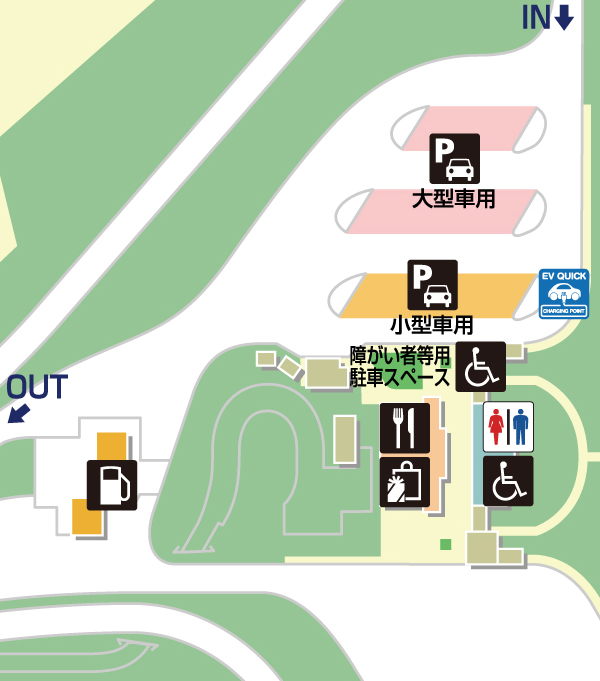 錦秋湖SA・下りでご利用いただける、各種施設・サービスのご紹介です。