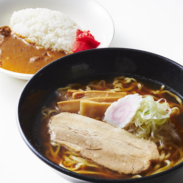 人気の喜多方ラーメンと、知る人ぞ知るミニのようでミニではない140グラムのライスで作られるミニカレーライスは、ボリューム満点、欲張りなあなたにお勧め。