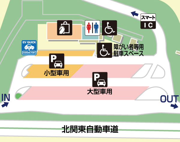 波志江PA・西行きでご利用いただける、各種施設・サービスのご紹介です。