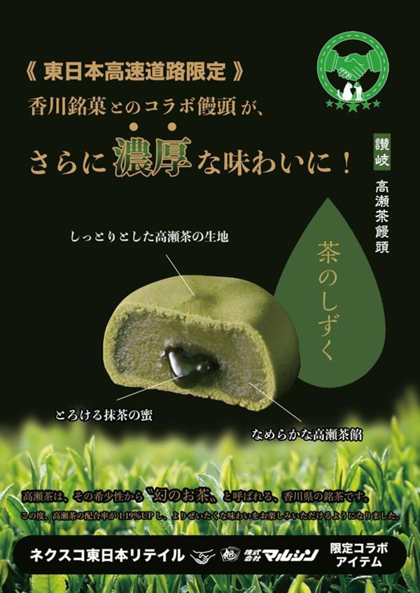 香川銘菓と当社でコラボした自慢の高瀬茶を使用した高速道路だけの限定商品です。