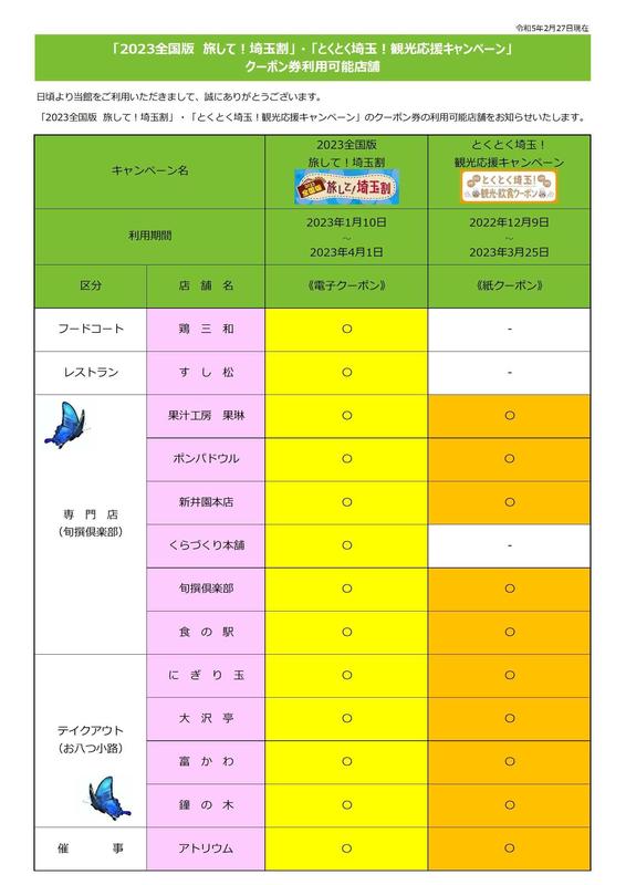 ENJOY!よりみち 「全国版 旅して!埼玉割」クーポン券利用可能店舗!! いつもPasar三芳をご利用いただき誠にありがとうございます。 当Pasarでの「全国版 旅して!埼玉割」クーポン券利用可能店舗をお知らせいたします。
