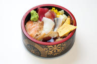 新鮮な海の幸をたっぷりと盛付けました。ボリューム満点!当店NO.1の海鮮丼です!是非ご堪能下さい。日替り味噌汁付き。
