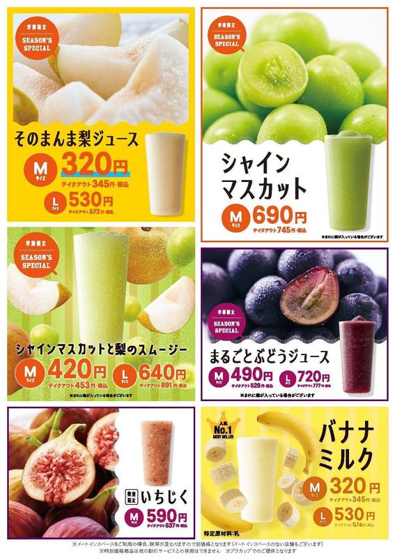 季節によって異なりますが、各種新鮮な搾りたてのフルーツジュースを提供しております。"飲むフルーツ"で皆様方の笑顔と健康をおいしくサポートいたします。