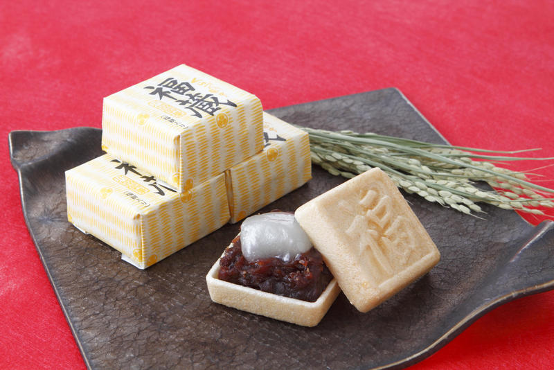 餡の中には佐賀県産ひよく米でつきあげた「福餅」を入れ、調和のとれた最中です。