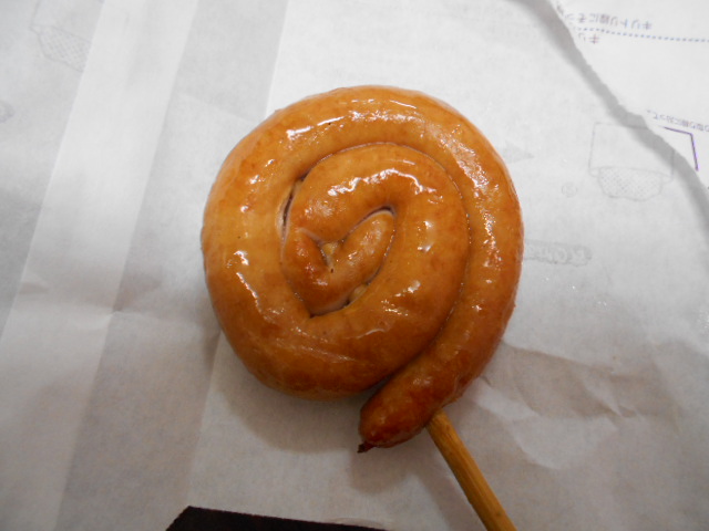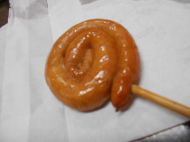串に長いソウセイジがキャンディーのように巻きつけてあって