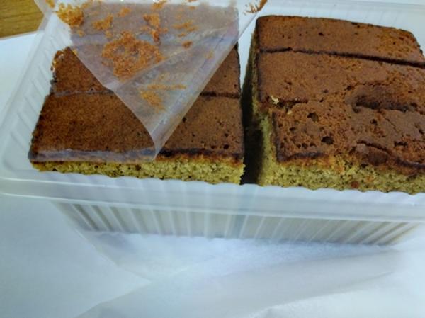 口に入れると、カステラの優しい甘みと、珈琲の苦みが少しします。
