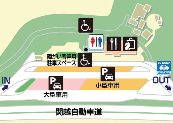 嵐山PA・下りでご利用いただける、各種施設・サービスのご紹介です。