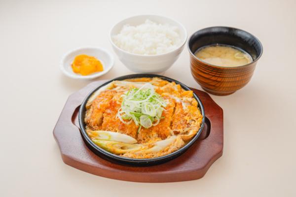 地元深谷ねぎと埼玉の卵「彩たまご」を使用した卵とじのかつ煮です。