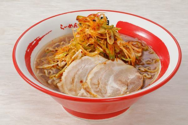 「深谷ねぎ」にラー油を絡めたトッピングで提供する醤油ベースのラーメンです。ご当地ならではの味を是非。1,080円(税込)