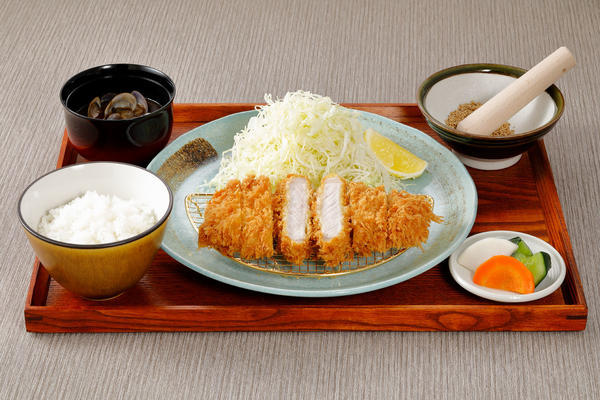 飼育期間「概ね200日以上」とじっくり丹念に育て上げた「豊かな旨味ときめ細かい肉質」匠の技ともいえる鹿児島黒豚の自信作を天然大エビフライも添えて提供します。2,950円(税込)