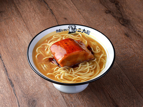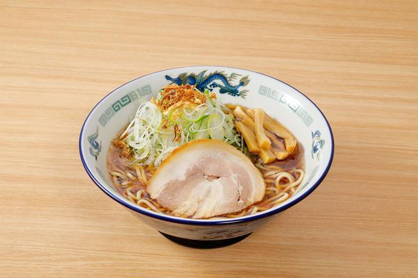 自家製麺にご当地食材の深谷ねぎ、さつま揚げ、豚ロースなどをトッピングしました。ラー油、黒マー油で味の変化もお楽しみ下さい。