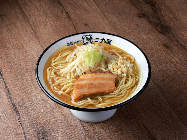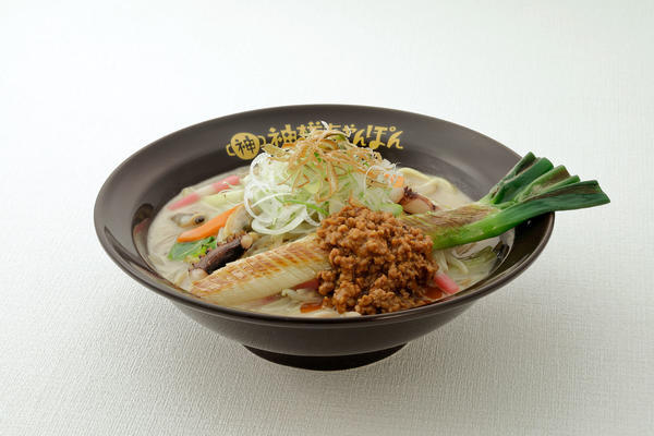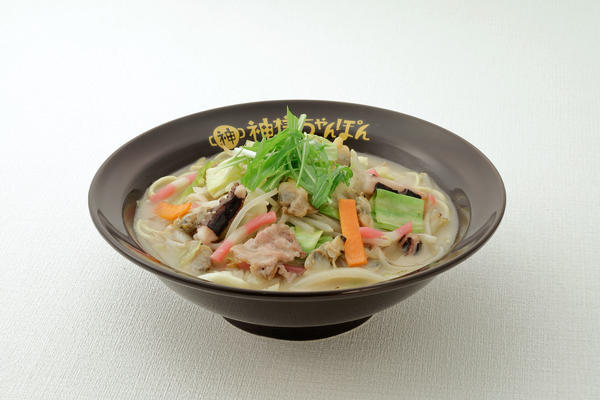 深谷ねぎのスライス、妙義舞茸とコーンをトッピングした自家製麺のちゃんぽん。バターのコクとともにお楽しみください。