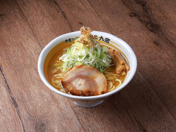 自家製麺にカットとスライスの2種類のご当地食材『深谷ねぎ』をトッピングし、ピリ辛の肉味噌、揚げねぎを乗せて仕上げました。