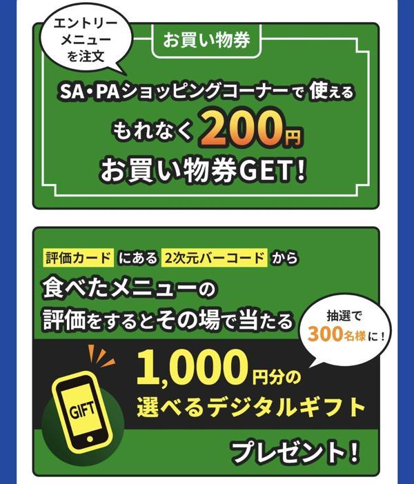 6.また、評価カードには対象のエントリーメニューを注文した施設のショッピングコーナーで使える200円分のお買い物券がついています。