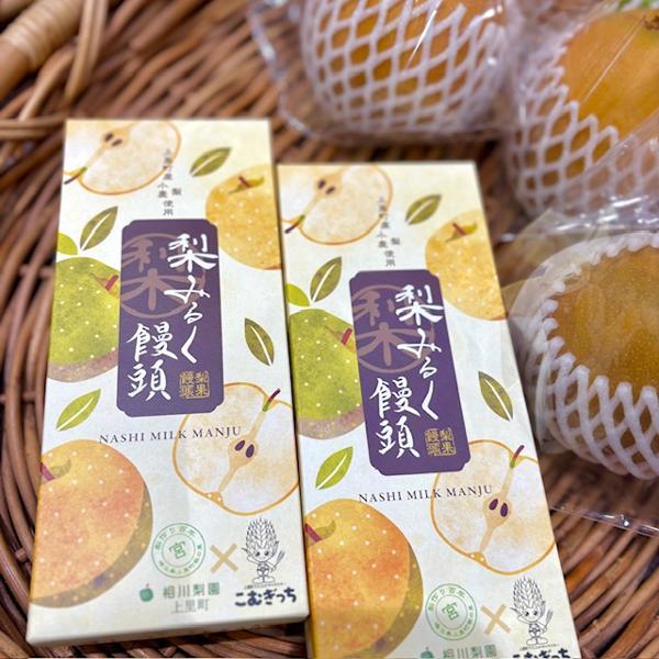 上里町産の梨と小麦を使った梨ミルク饅頭。
