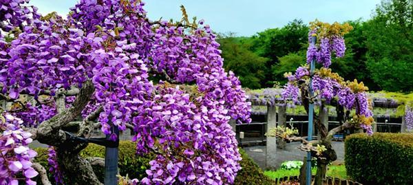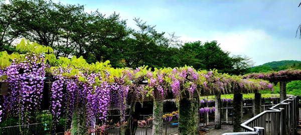 約2.3haの広い園内に、全長約350mの藤棚や、45種類の藤の見本園があり、