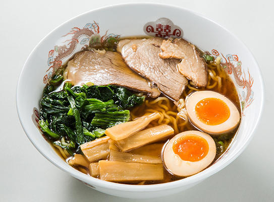 黒醤油スープに刻み玉ねぎでさっぱり感を加えた、当店1番人気「生姜醤油ラーメン」のアレンジメニューです。