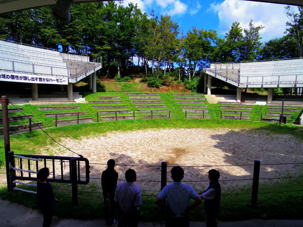 地震の際には生き残った闘牛の全てをヘリコプターによる空輸救出し、復興の足掛かりとして翌年から仮設の闘牛場で牛の角突きを再開しました。