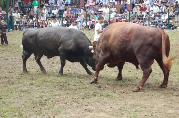 この地域の闘牛の特徴は、必ず引き分けにして対戦を終わる事です。