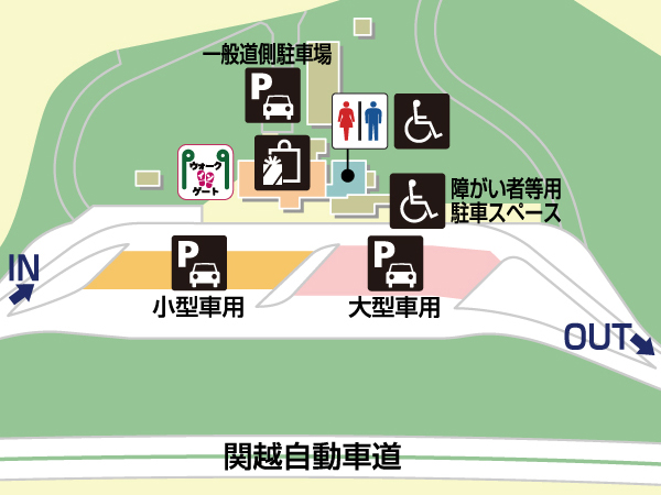 - 障がい者等用駐車場の設置、オストメイト対応トイレの整備等、バリアフリー化が行われているサービスエリアです。