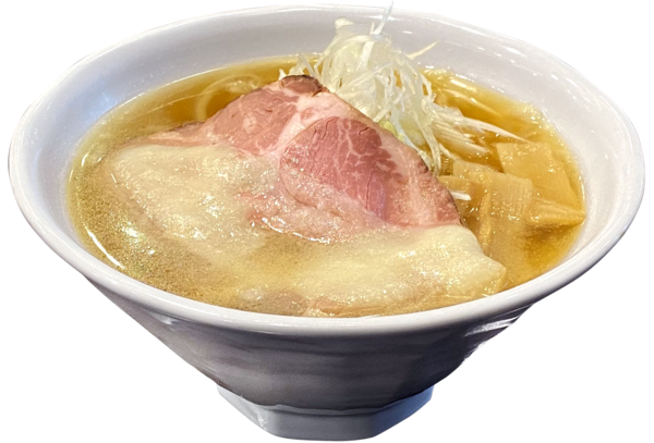 特製塩だれに絡めた下仁田ポークのバラ肉と野菜をこれでもかっ!とのせた爆盛りの一杯。特製塩だれスープと自家製麺との相性は◎!