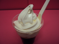 こんにゃく黒糖ゼリーときな粉とソフトクリームというシンプルな組合わせ。