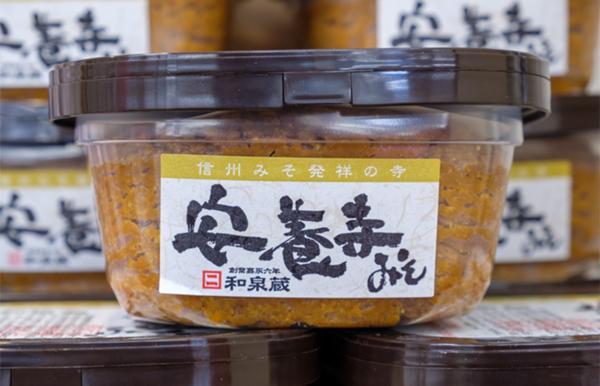 安養寺味噌は信州味噌の原点。創業嘉永(かえい)六年の老舗、和泉蔵の安養寺味噌は、国産原料100%、佐久平産大豆100%使用と、原材料にこだわりアリ!