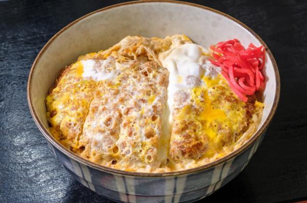 サクサクのカツを特製のタレで煮込み、地元産のブランド卵「浅間小町」でとじた