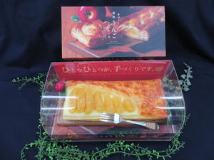 ふんわりと焼き上げたスポンジケーキの上に厳選した信州産りんごの蜜煮を