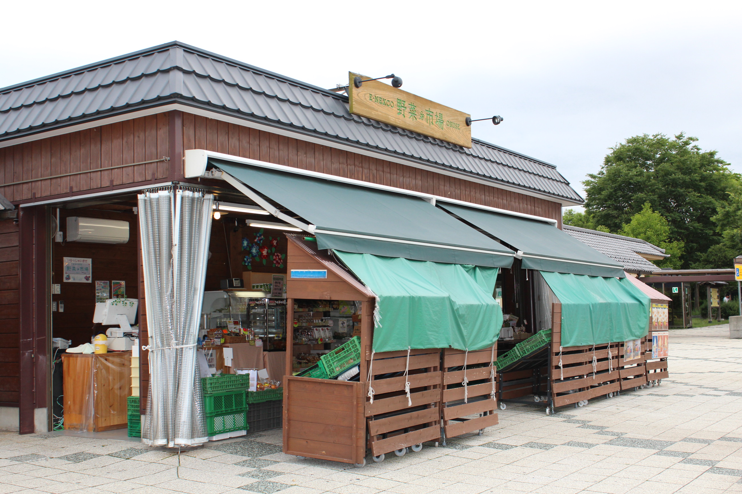 栗を使った食事やおみやげを豊富に取り揃えた、北信五岳の山並みが美しいPA。地元の野菜を販売する「E-NEXCO野菜市場」も併設しており、充実したショッピングが楽しめる。