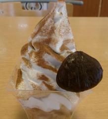 で、今回は小布施パーキングエリア下り店名物「ほうじ茶薫る渋皮栗ソフト」