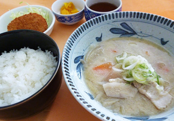 地元上越市で作られた味噌を使用した自家製の豚汁定食です。リピーターのお客さまも多い人気のおすすめメニューです。
