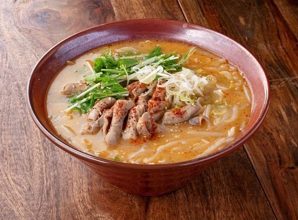 信州のみそで味付けした豚モツの「モツ煮」をトッピングした、ボリュームのある味噌ラーメンです。