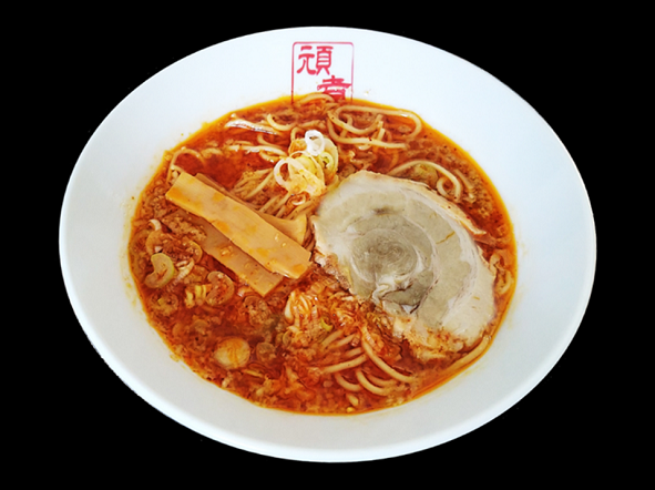 「頑者」 創業当時の味を再現したスッキリとした豚骨醤油のスープに背脂のコクと旨み、細めんとの相性は抜群です。