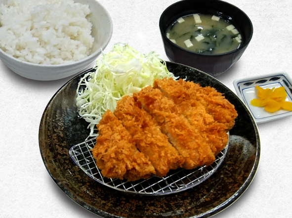 ボリューム満点で大人気の「菖蒲deカツ(勝つ)定食」