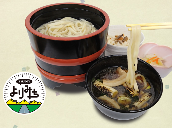 コシのあるうどんを、”深谷ねぎ“と埼玉の銘柄豚「味麗豚(みらいとん)」を使った肉汁につけてお召し上がりください。