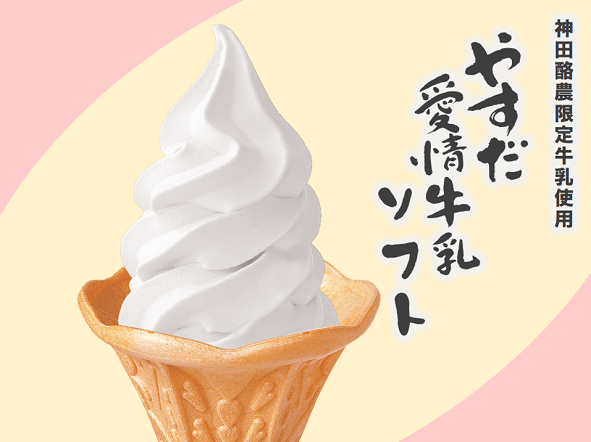 新潟県阿賀野市で三代に渡り酪農を営んでいる「神田酪農」のとってもおいしい愛情牛乳を使用したソフトクリームです。