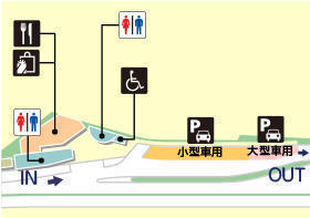 - 障がい者等用駐車場の設置、オストメイト対応トイレの整備等、バリアフリー化が行われているサービスエリアです。