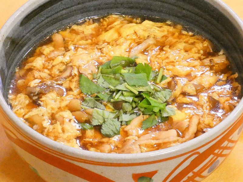 しめじ、舞茸、えのきに加え野菜もたっぷりいれスープにとろみをつけた逸品です。