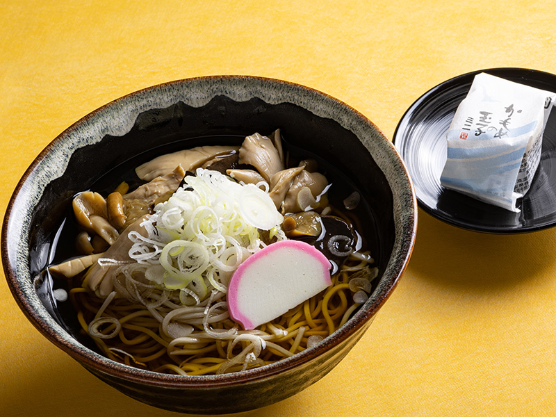 でっこらきのこの旨煮そば 東北の銘菓を添えて