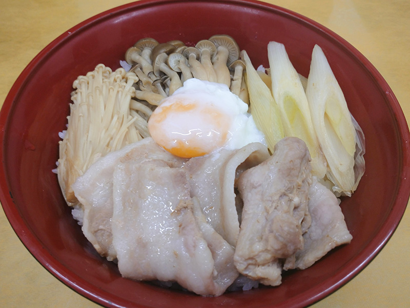 甘じょっぱく煮付けたきのこを、温玉と絡めてお召し上がりください。四倉PA下りらしい、ボリューミーな丼です。
