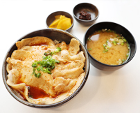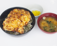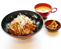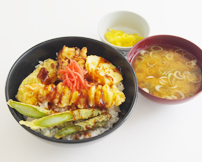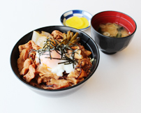 フードコート醤油ベースのタレに、カツをくぐらせた新潟名物「たれかつ丼」です。甘じょっぱい味付けのカツとご飯の相性はバツグン!丼タレは売店でも販売しております。